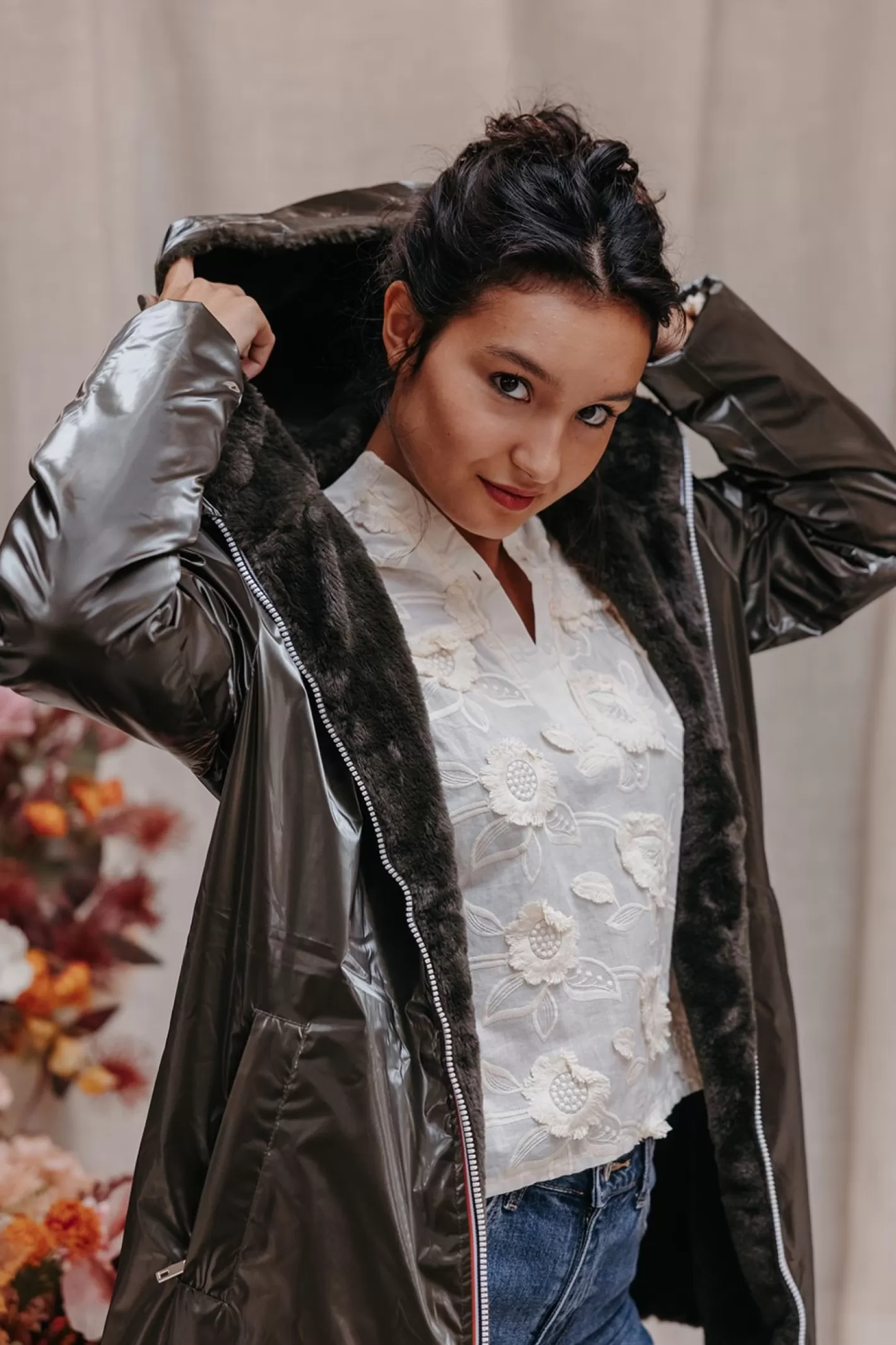 Voici ROMAIN, notre parka façon kway réversible, ultra réconfortante ! Un côté fausse fourrure tout doux et un côté ciré métallisé, pour créer une infinité de looks d’automne ! Chez mlle, on la porte sur nos blouses et nos jolies mailles.