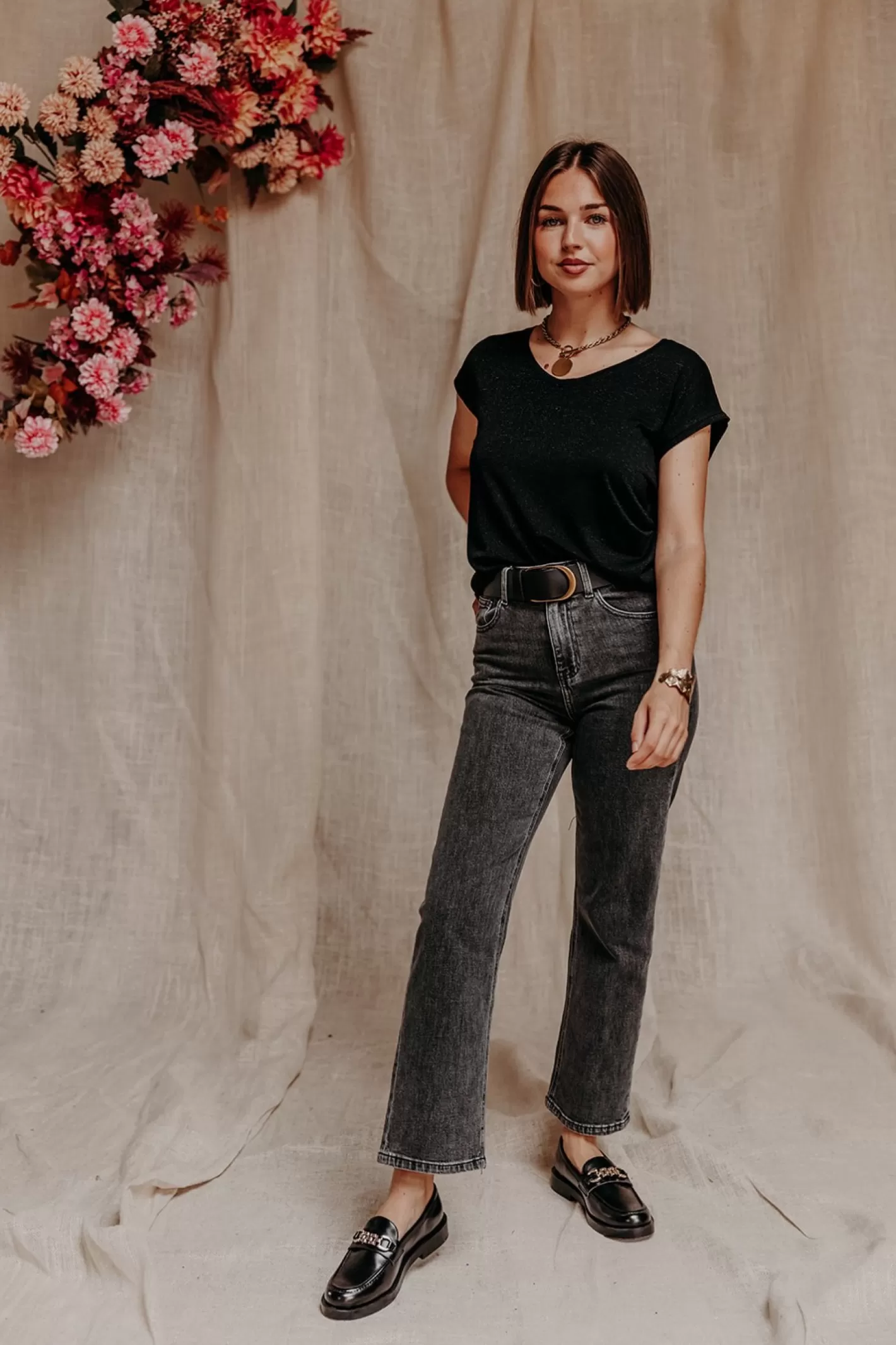 Coup de coeur pour le t-shirt BILLOTEE ! Une jolie couleur noire avec de fine rayures irisées, c’est le modèle à avoir dans son dressing à la mi-saison. Chez mlle, on aime le porter sur un denim clair avec des accessoires dorés.
