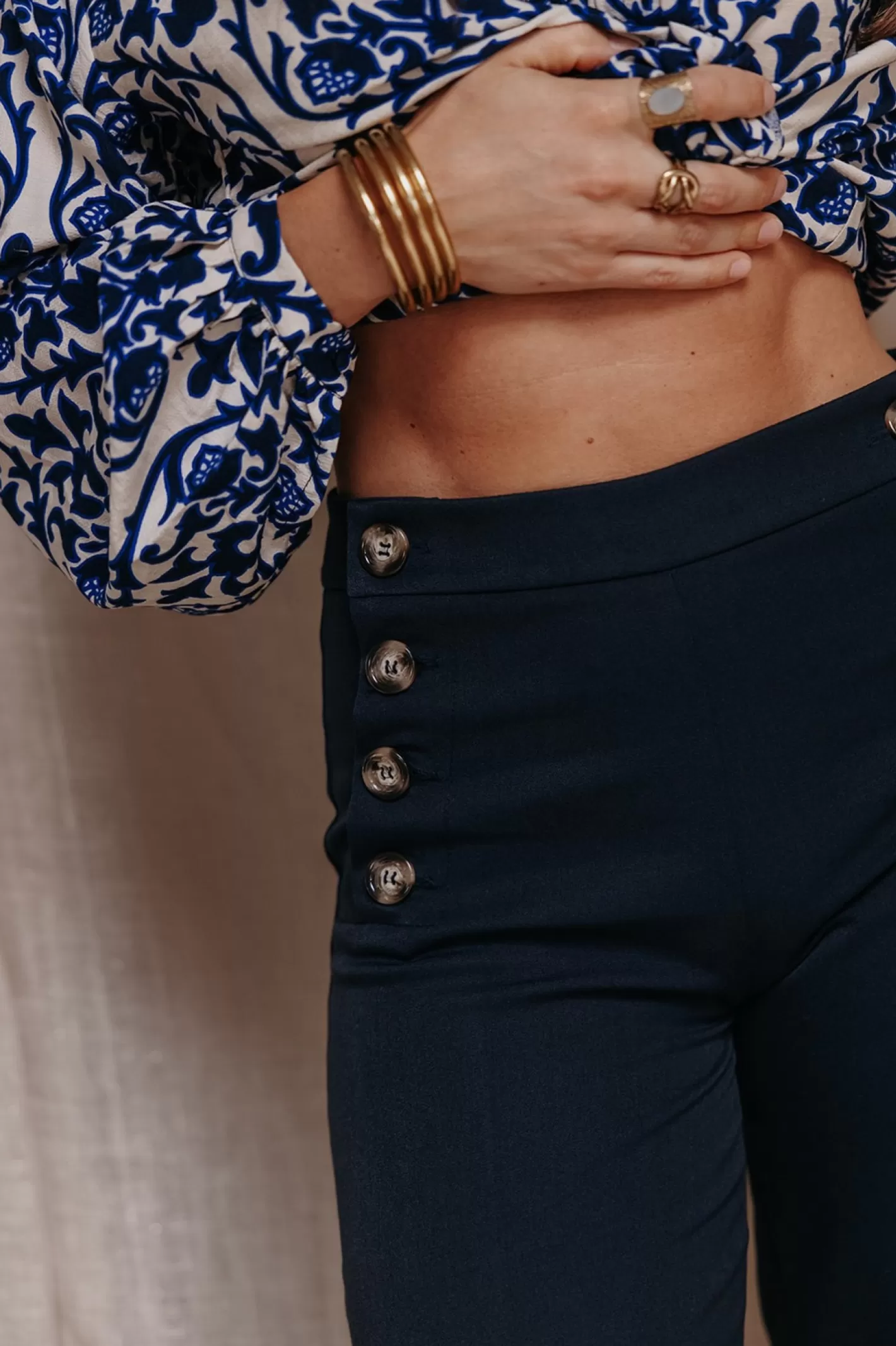 Rien de mieux qu’un pantalon à pont pour une tenue chic ! On aime ses détails de boutons sur les poches qui apportent …