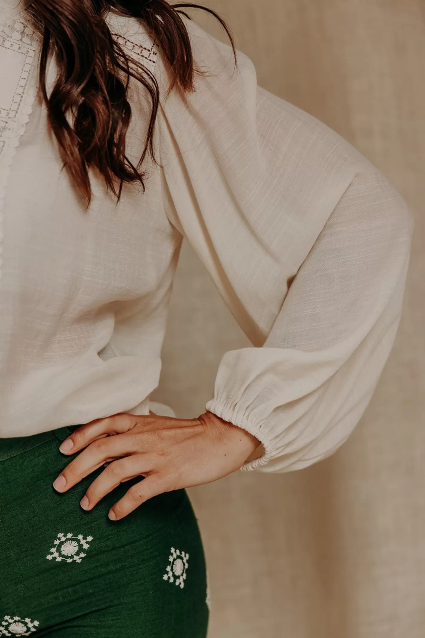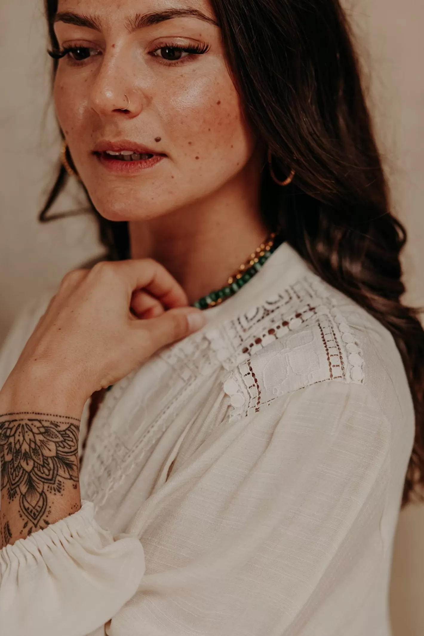 Hello MUSC, notre petite blouse coup de cœur ultra romantique. On craque pour sa matière en voile et son jeu de dentelle sur plastron. Chez mlle, c’est un indispensable de notre dressing que l’on porte avec de jolis pantalons ou sur des denims.