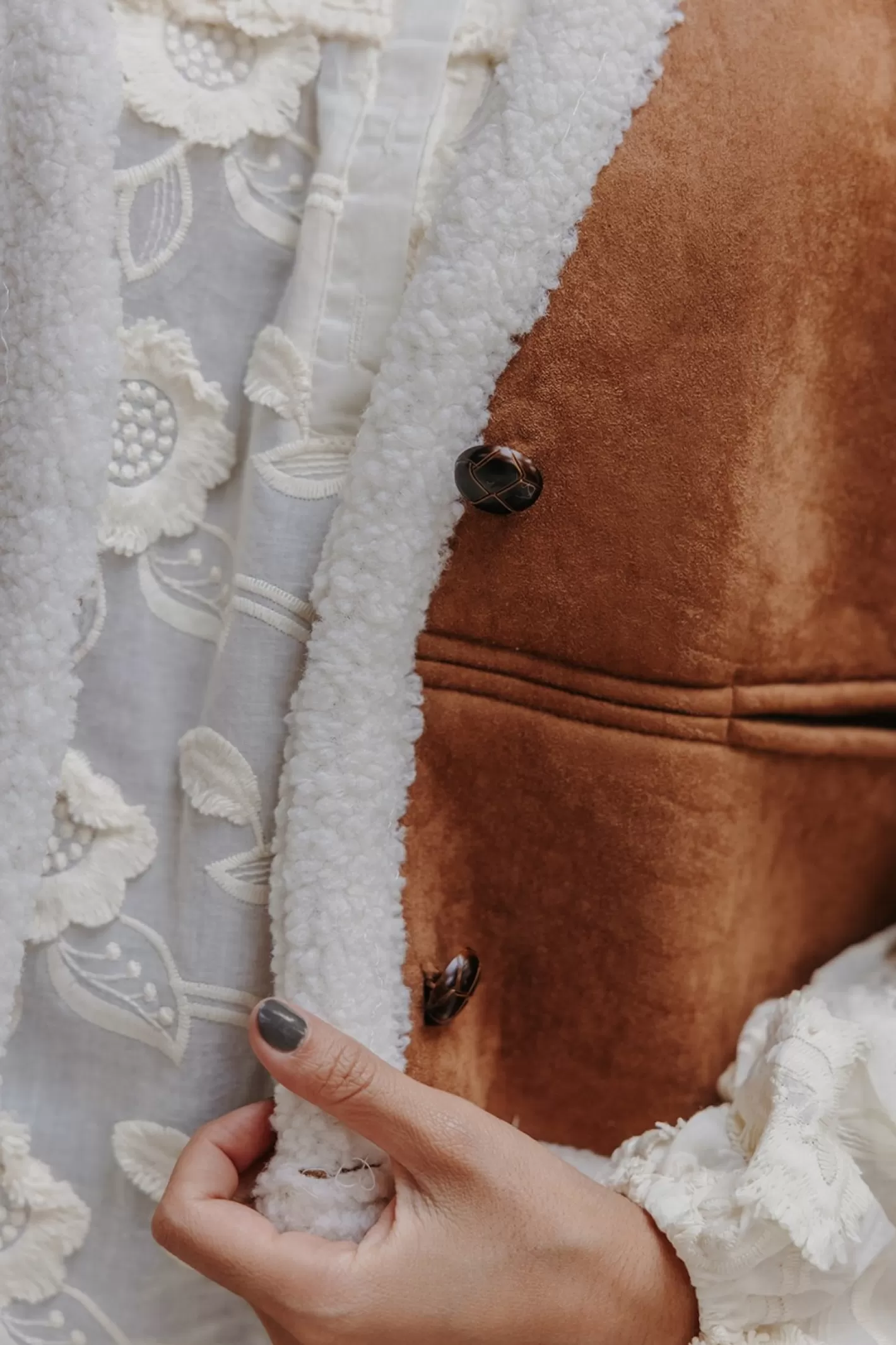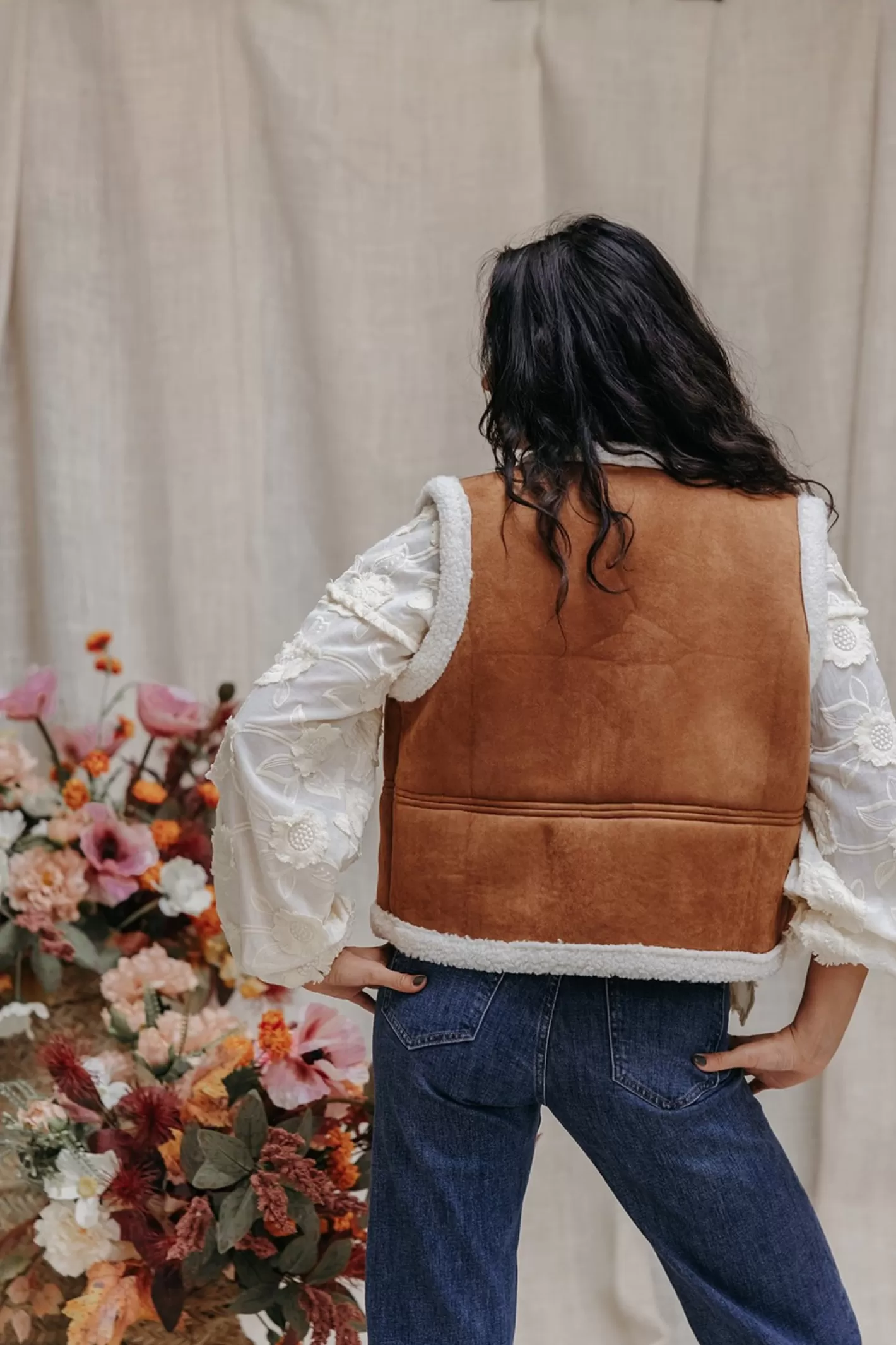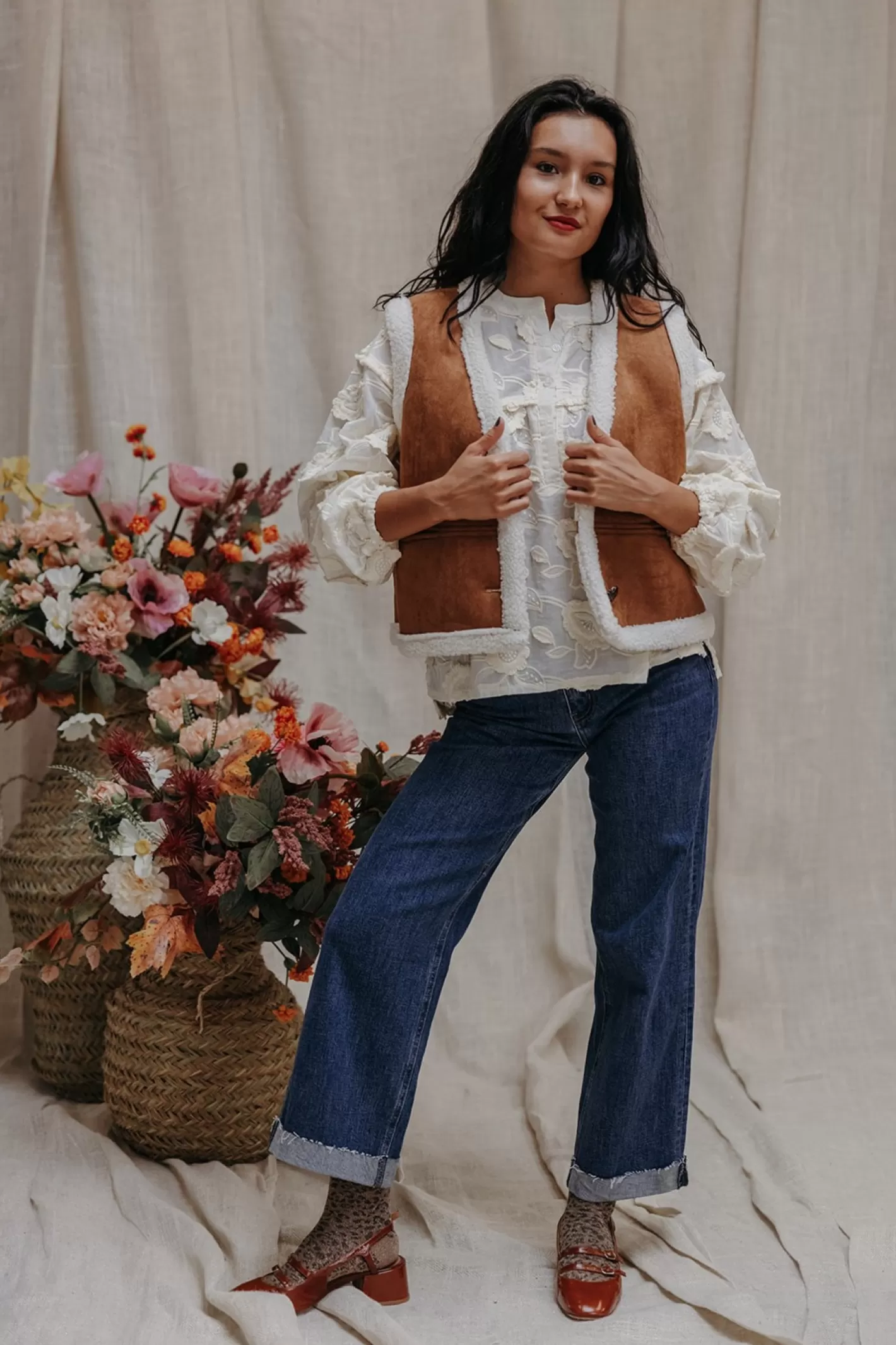 DENZEL, c’est LA pièce idéale pour bien démarrer l’automne. Une veste effet peau lainée doublée en sherpa ultra comfy. Le genre de petite veste sans manches qu’on ne quitte plus tellement elle est parfaite ! Chez mlle, on la porte sur une jolie blouse avec un denim.