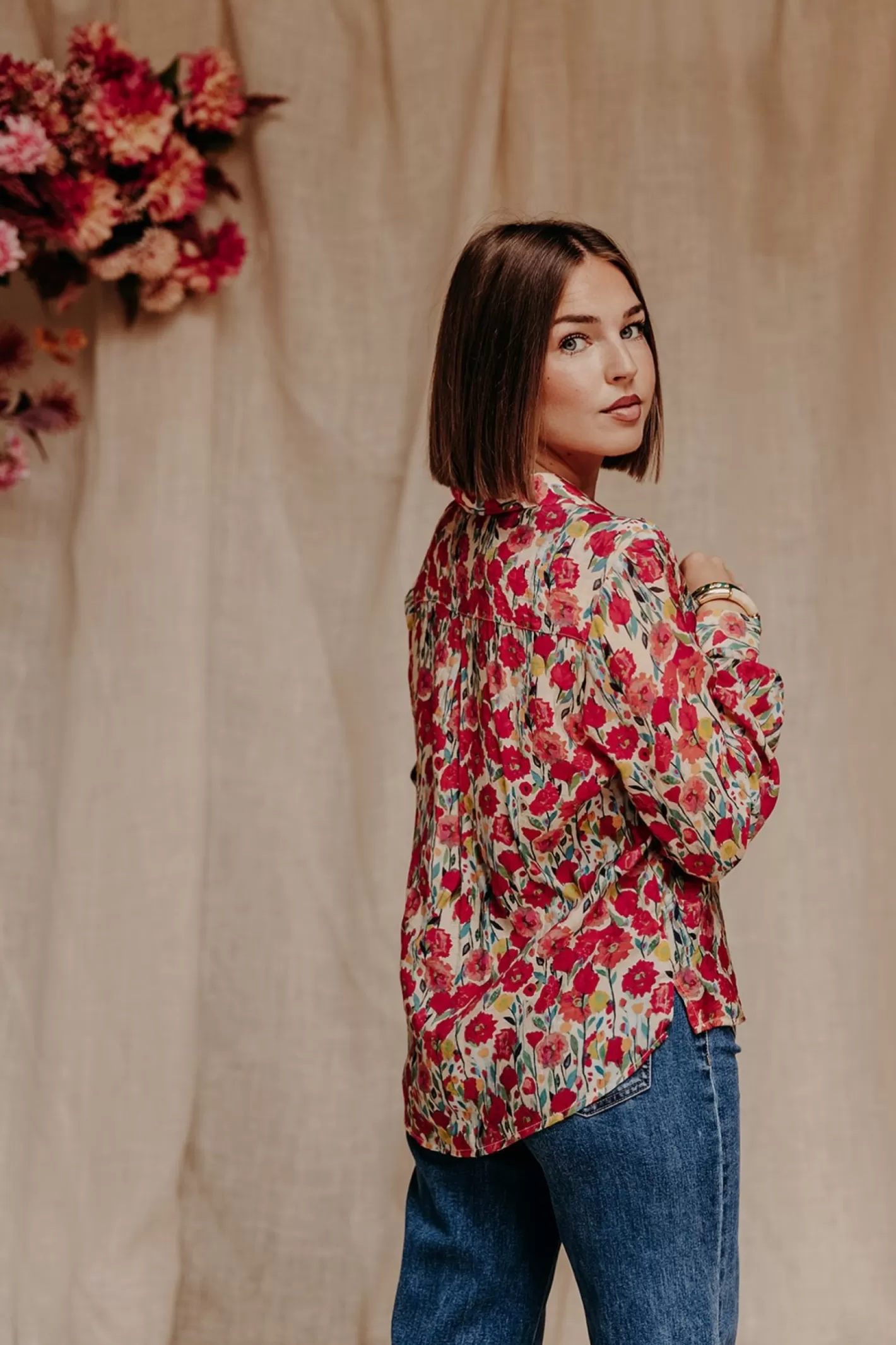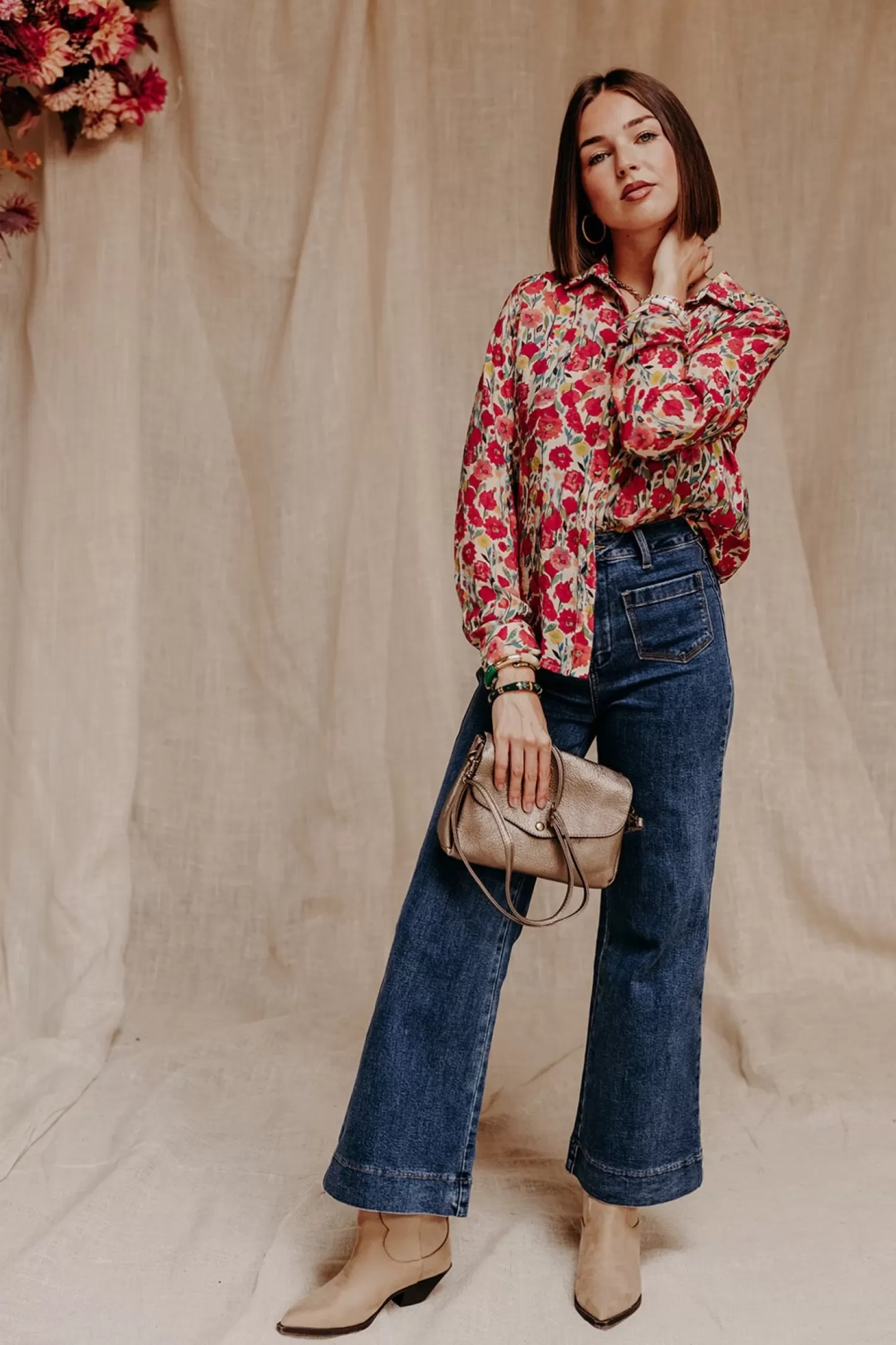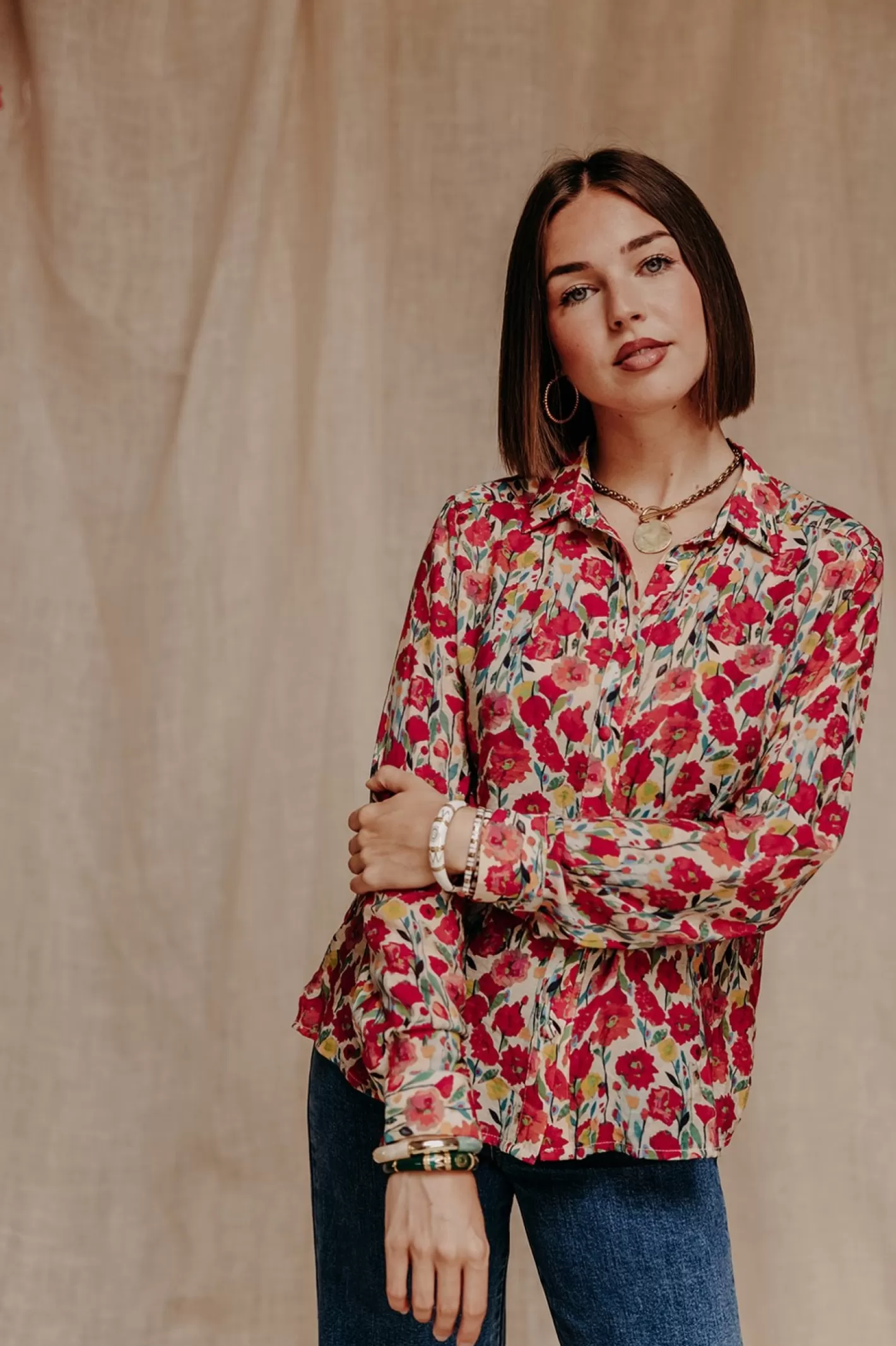 Dans la famille chemise, je voudrais les fleurs ! Voici EMY, un joli print bouquet délicatement posé sur une viscose. C’est facile, joyeux, pour tous les jours. Comme toujours ici ! On aime la porter avec un joli denim et des accessoires dorés.