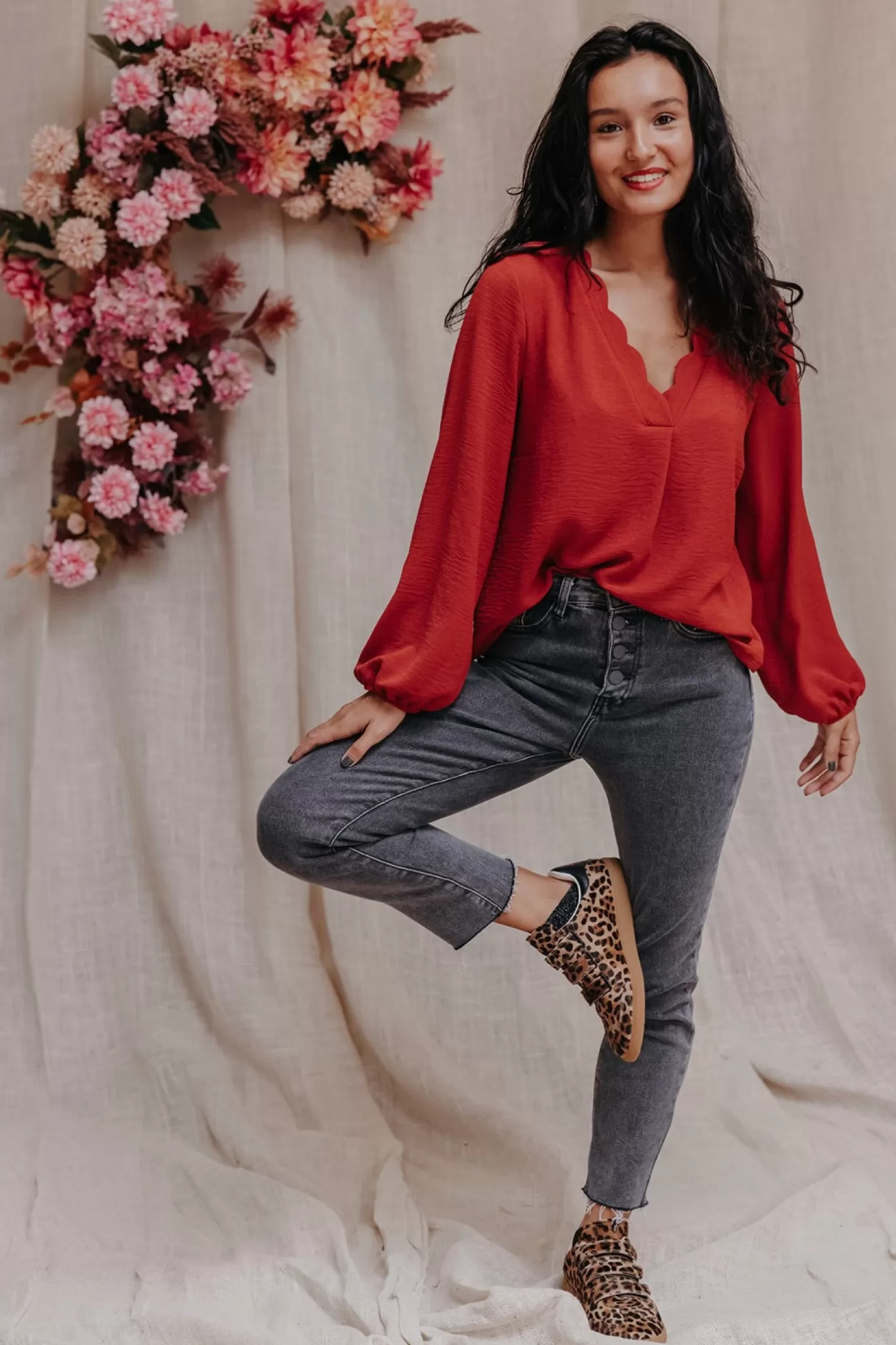 Classique. Formelel. Simple. Elégante. Notre blouse NACRE en version manches longues est l’indispensable de la saison. Dotée d’une touche d’originalité au niveau de l’encolure et des poignets, elle existe en marine et écru. Chez mlle, on adore l’assortir avec notre jean gris WASHINGTON et un accessoire tel une ceinture à motif.