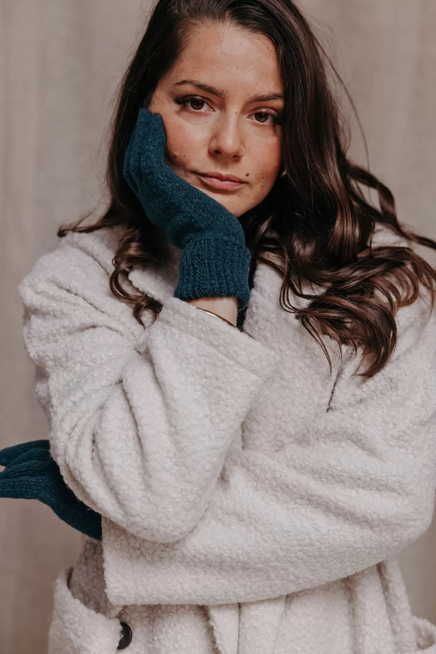 Des gants tout doux et colorés, comment ne pas craquer ? Pour être bien au chaud tout l’hiver et avec style on opte pour les gants PYRON ! On les associent avec un joli manteau écru.