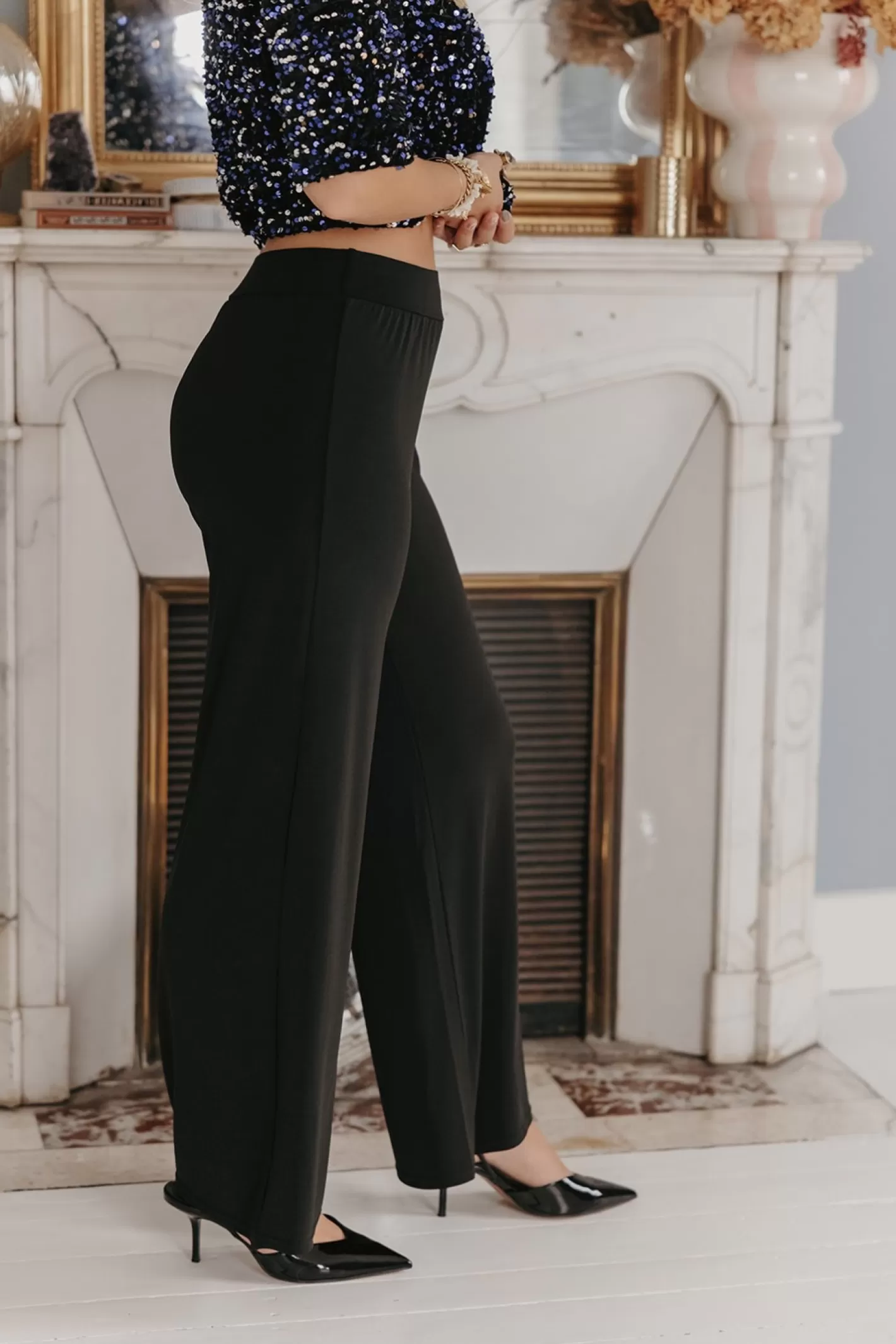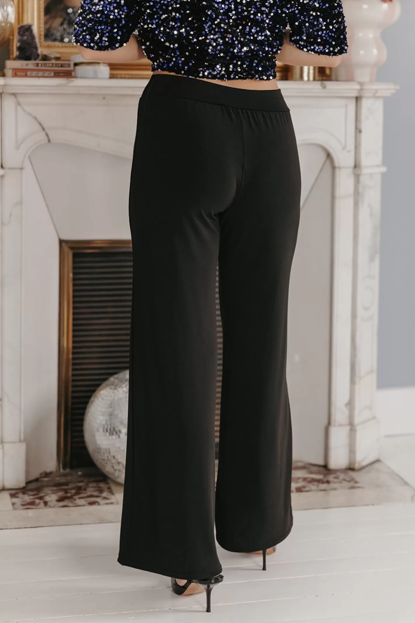 Confortable et élégant, on vous présente ADELE ! Un pantalon fluide aux jambes larges, ultra tendance. Sa couleur noire permet d’avoir un look chic autant en soirée que en journée. Chez mlle, on l’associe avec KAM, un top coloré et à sequins. On valide le look pour les fêtes de fin d’année.