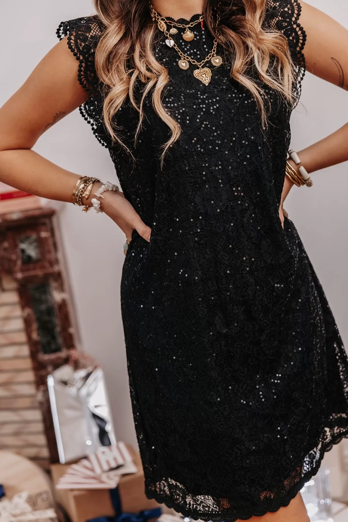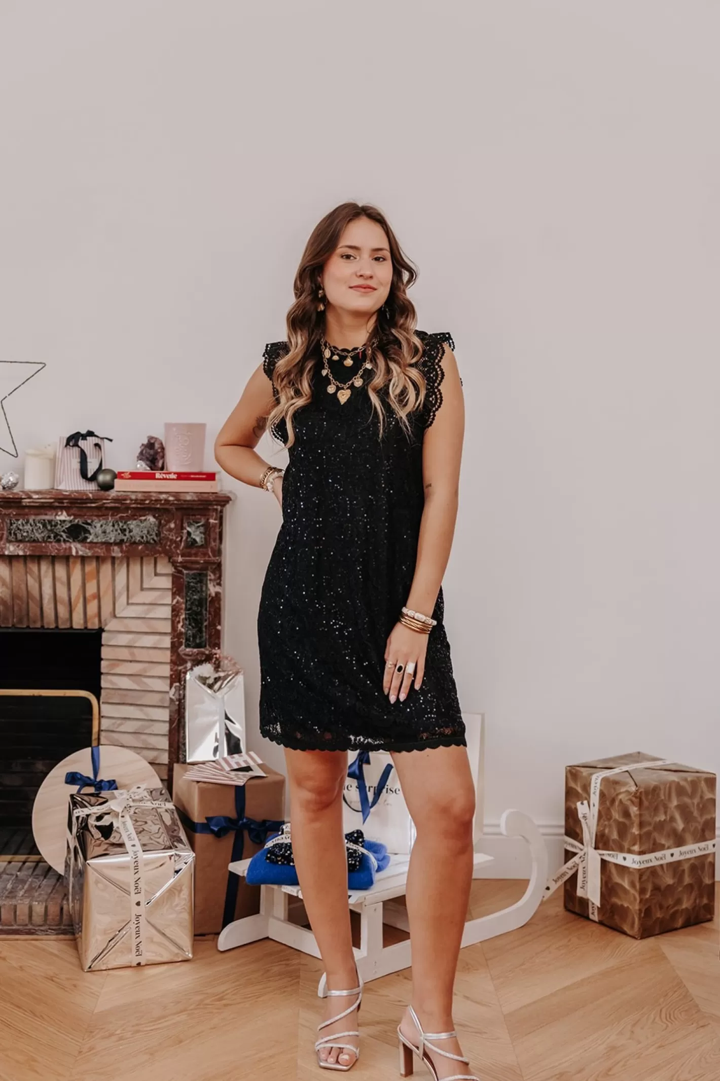 C’est l’occasion de briller ! OLLINE, notre ravissante robe aux nombreux détails raffinés. Ultra féminine avec sa dentelle à sequins, elle reflète la lumière. Chez mlle, on aime rajouter de jolis colliers et une belle paire de talons argentés pour finir le look.